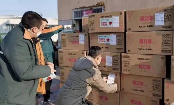 半小時之后,吉林省紅十字把這批物資從機場送到了離機場最近的金鑫街營業(yè)部,先期溝通了解到,防疫物資數(shù)量較大,為了能快速卸下物資轉(zhuǎn)送到郵車上,金鑫街營業(yè)部10名佩戴口罩等防護裝備的攬投員,在營業(yè)部外面的空地上搭起了一條“人工”傳送帶,卸車、復重、貼單、處理信息、消毒、裝車,大家爭分奪秒、有序進行,59箱防疫物資,14萬個口罩,大家齊心協(xié)力,30分鐘全部成功發(fā)運。在長春市分公司的大力支持下、各部門全力配合下,專人專車運至長春郵區(qū)中心局做好相應接轉(zhuǎn)工作,及時裝上了待發(fā)的郵車。
