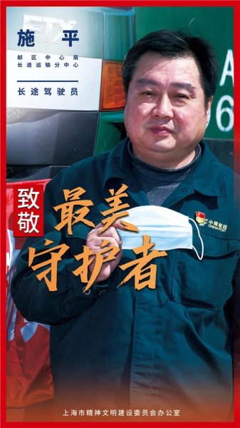 近期,上海市精神文明建設委員會辦公室開展“致敬!最美守護者”公益形象展示系列活動,對防控新冠肺炎疫情期間仍堅守崗位保障城市運行工作者進行拍攝宣傳報道。值得驕傲的是上海郵政兩位優(yōu)秀同志入選最美守護者。他們分別是普陀區(qū)寄遞事業(yè)部新村路營業(yè)部投遞員楊輝、郵區(qū)中心局長途運輸分中心濟南線駕駛員施平。