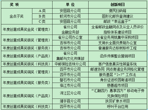 為進一步深化創(chuàng)新管理,提升創(chuàng)新能力,繼續(xù)保持全員創(chuàng)新氛圍,推動優(yōu)秀創(chuàng)意落實,推進創(chuàng)新成果轉(zhuǎn)化,吉林省分公司根據(jù)《吉林省分公司創(chuàng)新工作管理辦法》、《吉林省分公司創(chuàng)意獎勵評審辦法》等相關規(guī)定,全面啟動了2019年全省郵政創(chuàng)新大賽活動。