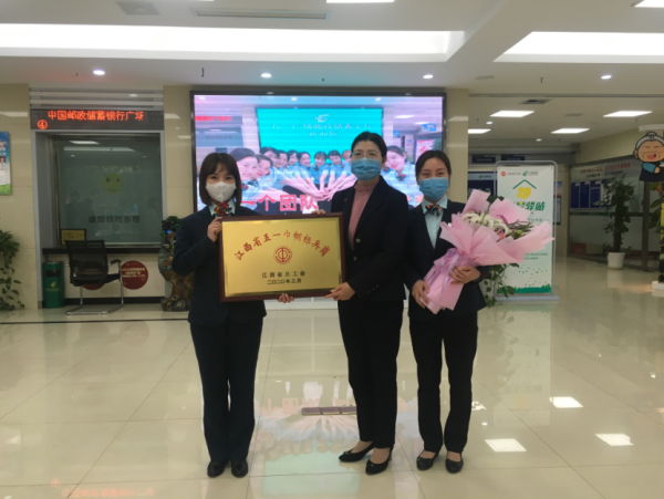 4月23日上午,江西省總工會黨組成員、副主席饒冬梅,江西省總工會女工部部長陳偉芳、副部長徐紅梅一行,在省分公司黨委成員、副總經(jīng)理、工會主席戴書華的陪同下,蒞臨南昌市分公司廣場營業(yè)所進行“江西省五一巾幗標兵崗”授牌。