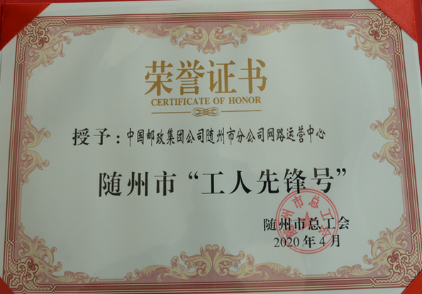 4月29日,在隨州市慶祝“五一”國(guó)際勞動(dòng)節(jié)暨表彰大會(huì)上,隨州分公司網(wǎng)路運(yùn)營(yíng)中心被市總工會(huì)授予隨州市“工人先鋒號(hào)”。