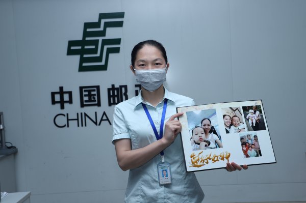 圖為貴港市分公司城區(qū)營業(yè)局女職工楊紅梅展示自己個(gè)性化紀(jì)念冊。(廣西區(qū)郵政工會(huì))