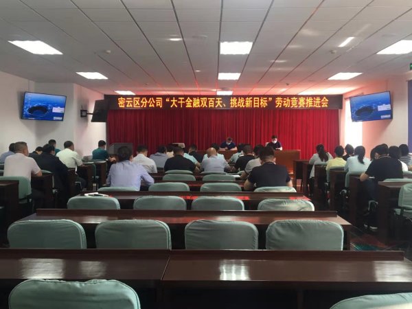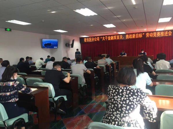 5月26日下午,北京有著密云區(qū)分公司召開“大干金融雙百天,挑戰(zhàn)新目標”勞動競賽推進會。在上周召開部室、支行負責人啟動會的基礎上,召開了機關全體員工和部分投遞員、營業(yè)員參加的競賽推進會。