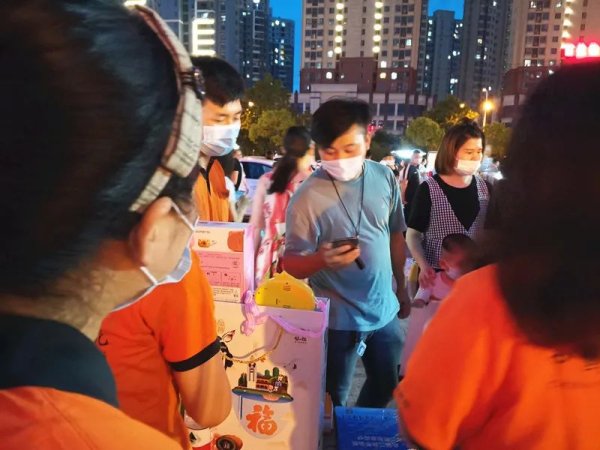 暮色漸沉,地處黃岡市中心遺愛湖的黃梅戲大劇院廣場(chǎng),擺攤的商販陸陸續(xù)續(xù)出攤了,各種售貨棚、飲食攤一應(yīng)俱全。為加速疫情后經(jīng)濟(jì)復(fù)蘇,幾個(gè)月清清冷冷的街景也因連日來逐漸火熱的地?cái)偨?jīng)濟(jì),又有了曾經(jīng)的煙火氣。6月10日以來每天晚上6點(diǎn)鐘,這里都會(huì)準(zhǔn)時(shí)出現(xiàn)一群穿著郵政標(biāo)志服的小哥哥小姐姐們,一排整齊劃一的郵政宣傳展板,一字排開的郵政柜臺(tái)上琳瑯滿目的郵政產(chǎn)品,成為黃岡夜市街頭一道靚麗的風(fēng)景線。