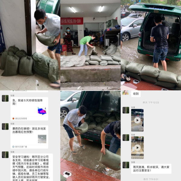 區(qū)分公司防訊辦在安全工作微信群、QQ群持續(xù)播報漬水路況、天氣預(yù)警、暴雨提示信息,提醒員工時刻關(guān)注雨情,提前做好防范;加強對地勢低洼營業(yè)網(wǎng)點、投遞站等場地、房屋滯水情況的排查,及時堆碼沙袋。
