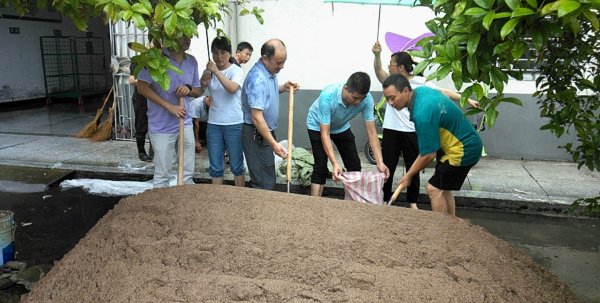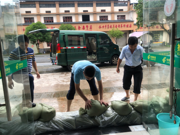 面對(duì)不斷涌進(jìn)的積水,大家商議決定,只有用沙袋在門口阻隔才能擋住水進(jìn)來。在這種暴雨不停,街上積水成河的情況下,哪里尋得到沙子呢?關(guān)鍵時(shí)刻,李文娟同志打電話給家人,冒雨送來一車沙子??h公司領(lǐng)導(dǎo)帶領(lǐng)中層干部和普通員工馬上又來到場地,部分人員清理積水,部分人員裝沙制袋。最讓人感動(dòng)的是臨近退休的舒信財(cái)同志,忍著腳痛也主動(dòng)參與抗洪防汛工作。雨水、汗水打濕了衣服也不管不顧,領(lǐng)導(dǎo)勸他休息他說不累。經(jīng)過大家的齊心協(xié)力,場地的積水被清理干凈,120個(gè)沙袋也做好了。小沙袋被整齊得碼放在倉庫、電力室、機(jī)要室、分揀房門口,形成了一道防護(hù)屏障。
