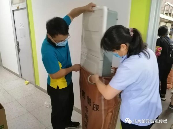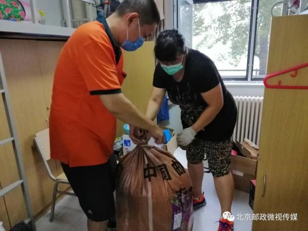 “好的,根據(jù)您的實(shí)際收寄需求,我們盡快給您制定一個(gè)實(shí)際收寄方案的確定?!痹诮Y(jié)束了與學(xué)校的通話后,劉永順立刻將學(xué)校的要求和情況向西城區(qū)西外大街支局進(jìn)行了工作匯報(bào)。支局在得知學(xué)校需求和收寄情況的轉(zhuǎn)變后,啟動(dòng)了應(yīng)急收寄預(yù)案。從細(xì)節(jié)入手,深入研究收寄、運(yùn)輸?shù)戎攸c(diǎn)環(huán)節(jié),積極進(jìn)行車輛物資的調(diào)配,調(diào)動(dòng)全局各班組力量,于7月3日成立了“大學(xué)生包裹”收寄突擊隊(duì),組建了“大學(xué)生包裹”收寄微信群,并再一次與學(xué)校進(jìn)行了數(shù)據(jù)核對(duì)工作,為順利完成西城區(qū)西外大街支局的“畢業(yè)寄”第一單奠定了基礎(chǔ)。北京的7月已經(jīng)進(jìn)入到了酷暑難耐的時(shí)候,校園包裹收寄工作從7月6日至7月9日開始,西外大街支局局領(lǐng)導(dǎo)帶領(lǐng)20名收寄突擊隊(duì)隊(duì)員,每人每天在宿舍與教學(xué)樓之間奔波。“605宿舍夏偉負(fù)責(zé),306教室關(guān)鍵負(fù)責(zé)......”每天早上7:30支局長王磊準(zhǔn)時(shí)來到學(xué)校進(jìn)行每日第一輪的收寄分配工作,每三到四個(gè)宿舍或教室就會(huì)安排一名突擊隊(duì)隊(duì)員,與老師共同完成學(xué)生物品的封裝工作。一個(gè)小小的屏幕,一段長達(dá)1-2個(gè)小時(shí)的直播將成為莘莘學(xué)子與校園的最終道別。