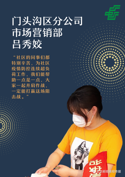 讓我們一起看看這群守護(hù)社區(qū)的郵政人, 他們有什么想說的?“一想到我們是代表的是郵政,任何工作都容不得一絲怠慢、推卸和應(yīng)付,遇到不理解不配合的群眾我們就積極去解釋,爭取理解和支持,和社區(qū)的同志共同做好安全防控工作”(門頭溝區(qū)郵政分公司渠道平臺部李美竹)“社區(qū)的同事們都特別辛苦,為社區(qū)疫情防控連續(xù)超負(fù)荷工作,我們能幫助一點(diǎn)是一點(diǎn),大家一起并肩作戰(zhàn),一定能打贏這場阻擊戰(zhàn)”(門頭溝區(qū)郵政分公司市場營銷部呂秀姣)“作為一名黨員,能在這樣的時(shí)刻盡自己一份微薄之力,是發(fā)自內(nèi)心的責(zé)任和使命,更是一份情懷和榮耀?!?nbsp;(門頭溝區(qū)郵政分公司服務(wù)質(zhì)量部李樹偉)“鄉(xiāng)親們跟親人是一樣的,我作為一個(gè)郵政人,不僅要為他們提供郵政服務(wù),在這個(gè)特殊時(shí)期,更要盡一份力,保障他們的安全。” (門頭溝區(qū)郵政分公司齋堂郵政支局 勞模王懷敬)