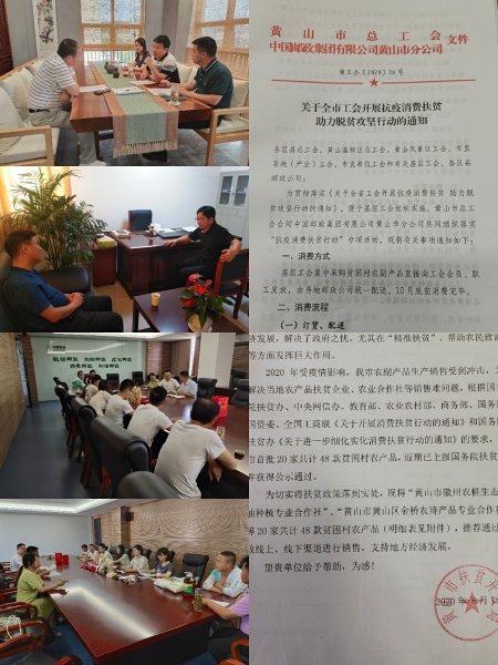 自省郵政工會(huì)組織開(kāi)展開(kāi)展抗疫消費(fèi)扶貧助力脫貧攻堅(jiān)行動(dòng)以來(lái),黃山市分公司領(lǐng)導(dǎo)高度重視,市郵政工會(huì)會(huì)同市渠道平臺(tái)部多次會(huì)商市總工會(huì)、市扶貧開(kāi)發(fā)局等部門(mén),獲得了政府領(lǐng)導(dǎo)的認(rèn)可和支持。近日,黃山市總工會(huì)與市郵政公司聯(lián)合發(fā)文,特別明確了黃山郵政的主渠道作用,指定各基層工會(huì)組織集中采購(gòu)貧困村農(nóng)副產(chǎn)品要統(tǒng)一到郵政公司要數(shù),由郵政公司統(tǒng)一配送,并將貨款匯入郵政指定賬戶(hù)。