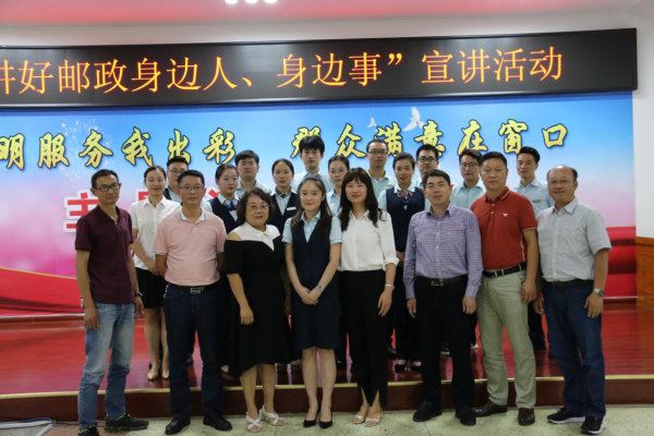 為大力踐行社會主義核心價值觀,提升郵政窗口文明服務(wù)水平。9月23日下午,蚌埠市郵政工會舉辦了“文明服務(wù)我出彩、群眾滿意在窗口”主題演講比賽。來自基層窗口的14名員工參加此次比賽。 比賽現(xiàn)場,參賽選手們緊緊圍繞演講主題,分別以《履職盡責(zé)服務(wù)大局,凝心聚力促進(jìn)發(fā)展》、《文明服務(wù)我出彩、群眾滿意在窗口》、《擦亮窗口,讓文明服務(wù)零距離》等為題,結(jié)合工作經(jīng)歷和自身感悟,以飽滿的熱情、簡潔質(zhì)樸的語言及鮮活生動的事例,將身邊的真實故事娓娓道來,從多個角度、多個層面表達(dá)了對“文明服務(wù)我出彩,群眾滿意在窗口”的理解與感悟,對“文明服務(wù)”做出了最真切的詮釋。 經(jīng)過激烈角逐,來自五河縣工會的楊奕摘得比賽桂冠,來自集郵文傳分會的金晶榮獲二等獎,來自懷遠(yuǎn)縣工會的孫靜和劉強(qiáng)、東區(qū)分會的徐燦獲得三等獎。比賽結(jié)束后,所有參賽選手和評委合影留念。