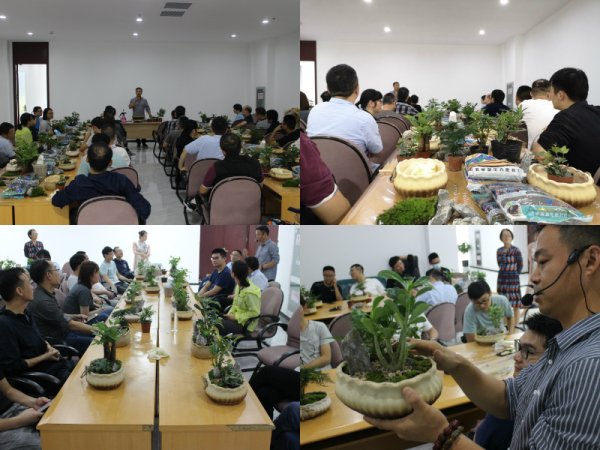 大家動起手來,將一棵棵植物輕輕放入盆中,培上土,再加上石塊、石子、青苔巧妙點綴。“陽光海灘”、“悠悠古原”、“雅致別院”、“狂野草原”、“亂石山野”,一件件生機勃發(fā)、妙趣橫生的盆栽作品被巧手制成。 為喜迎“國慶”“中秋”雙節(jié),活躍節(jié)日氣氛,增添生活情趣,省信息技術(shù)局工會請來園藝?yán)蠋煟瑸榇蠹遗e辦了這場別開生面的盆栽藝術(shù)沙龍會。老師現(xiàn)場講解植物特性及養(yǎng)護要點,演示盆栽技巧,在大家制作完成后,還對盆栽作品一一進行點評?;顒雍蟠蠹壹娂姳硎臼斋@滿滿,意猶未盡,活動實用而有趣,既學(xué)習(xí)了盆栽技術(shù),又提高了審美情趣,特別是動手環(huán)節(jié),構(gòu)思、組合、搭配、裝飾、定型,親手DIY真是很過癮。