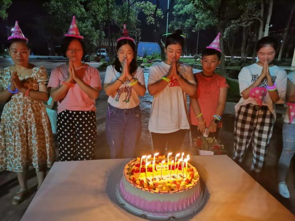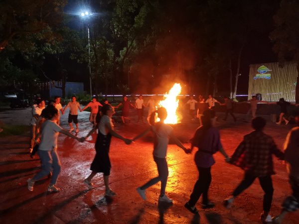篝火晚會前,市郵政工會為現(xiàn)場所有9月份生日的員工舉辦了一個(gè)集體生日宴,為他們精心準(zhǔn)備了生日蛋糕和精美禮品,并特邀了一名員工家屬上臺獻(xiàn)花祝福。接下來,開始的有獎(jiǎng)問答活動。最后,大家借著皎潔的月光,踩著歡快的節(jié)拍,圍著篝火跳起來。篝火晚會將現(xiàn)場氣氛推向了新的高潮。