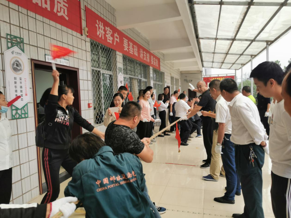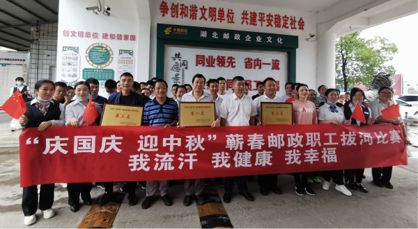 9月29日下午,為加強(qiáng)愛(ài)國(guó)主義教育,弘揚(yáng)愛(ài)國(guó)主義精神,豐富全體員工的業(yè)余生活,發(fā)揮蘄春郵政員工的精神風(fēng)貌,增進(jìn)員工之間的友誼,培養(yǎng)員工的團(tuán)隊(duì)精神,增強(qiáng)員工凝聚力和向心力,提高員工的身體素質(zhì),從而更好的促進(jìn)各項(xiàng)工作的順利開(kāi)展。在國(guó)慶中秋佳節(jié)來(lái)臨之際,蘄春縣分公司組織各支局、機(jī)關(guān)各部門開(kāi)展“我流汗,我健康,我幸福”全員健身活動(dòng)暨全縣“慶國(guó)慶 迎中秋”拔河比賽。