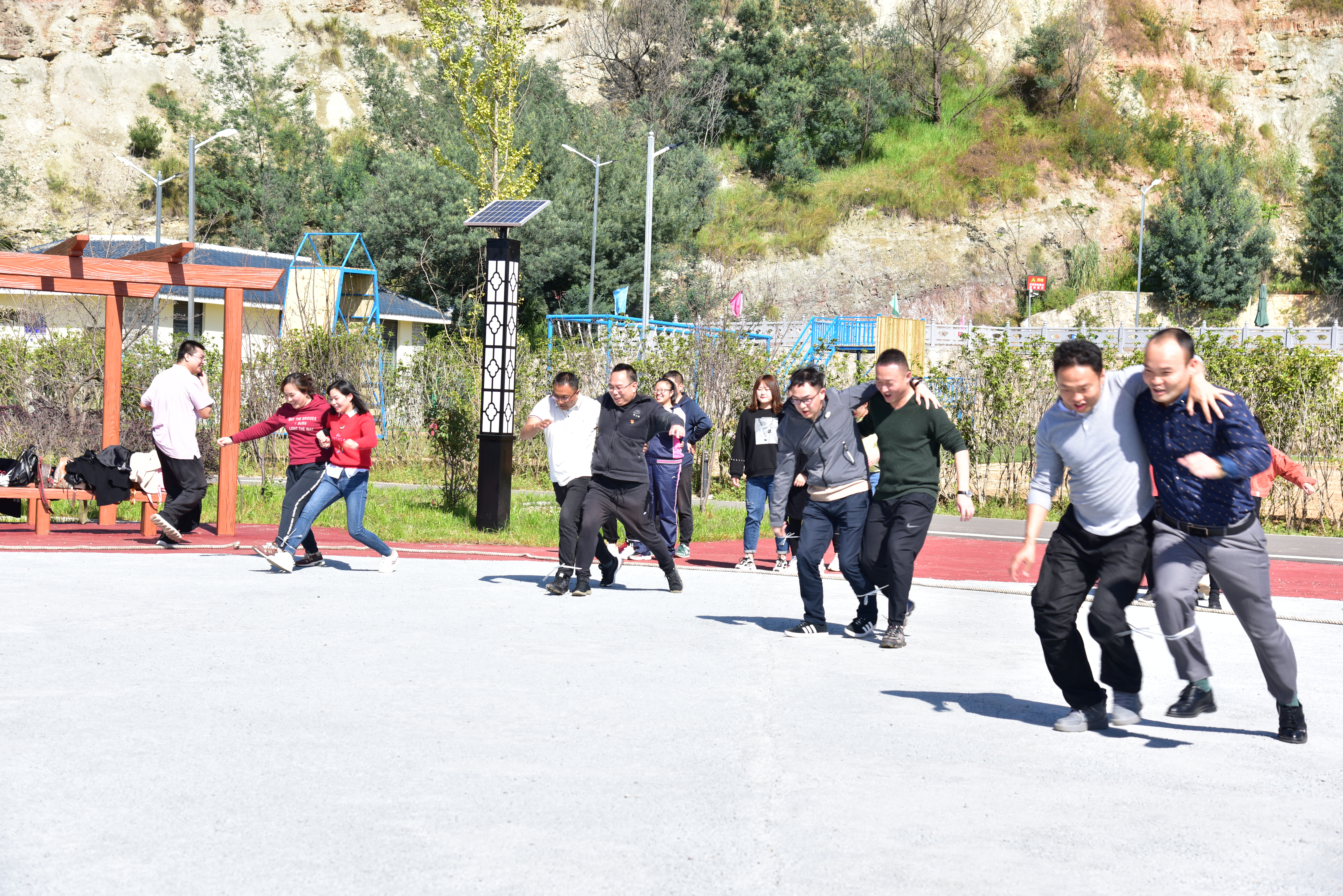 10月23日,金融部員工60余人組織開展了主題為“迎戰(zhàn)跨賽 圓滿收官”的趣味活動(dòng),用歡聲笑語表達(dá)圓滿收官的信心。此次趣味活動(dòng)共設(shè)了袋鼠跳、撥河等比賽,游戲開始前大家興致勃勃的自行分組,兩人一組綁著腳跟合力往前走,大家在奔跑過程中滑稽可愛,摔在地上也全然不顧,在場(chǎng)的觀眾笑得前仰后合,處處充滿著歡樂喜悅的氣氛。