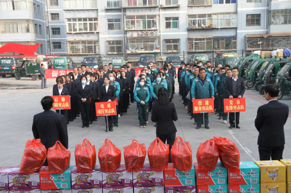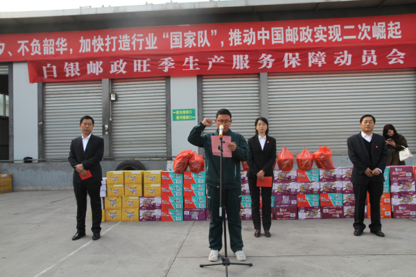 10月29日上午,甘肅白銀郵政分公司、白銀市郵政工會組織召開旺季生產(chǎn)服務(wù)保障動員大會暨集體慰問活動。 白銀郵政分公司黨委書記、總經(jīng)理褚艷代表市分公司黨委作了動員講話,號召全體干部職工圍繞“促發(fā)展、保暢通、重體驗”旺季生產(chǎn)工作總體要求,堅決打贏白銀郵政旺季生產(chǎn)服務(wù)保障攻堅戰(zhàn)。同時對工會提出四點要求:一是工會要認(rèn)真履行服務(wù)職責(zé),全心全意服務(wù)旺季生產(chǎn)、服務(wù)一線員工。積極開展慰問工作,把組織的關(guān)懷和溫暖送到廣大員工的心坎上。二是工會干部要積極作為,深入班組幫助解決員工生產(chǎn)生活中的實際困難和問題,當(dāng)好職工的“娘家人”。三是發(fā)揮職工小家、職工之家作用,切實做好旺季生產(chǎn)員工就餐、飲水、休息、保暖等服務(wù)工作。動員會上,黨員先鋒突擊隊、投遞服務(wù)突擊隊、電商項目突擊隊、后勤保障突擊隊代表依次宣誓。市分公司主要領(lǐng)導(dǎo)為職工們送上了方面便、圍脖、手套等慰問品。 為認(rèn)真開展旺季生產(chǎn)員工慰問活動,白銀郵政工會提前制定計劃,細(xì)化措施。通過網(wǎng)上問卷調(diào)查征求員工對慰問品種的選擇意向和建議,依據(jù)調(diào)查結(jié)果確定采購了3.25萬元慰問用品;職工食堂、小家食堂在旺季生產(chǎn)期間為寄遞崗位員工提供免費(fèi)就餐和夜餐服務(wù);配合行政對郵運(yùn)車輛、職工宿舍、食堂等設(shè)施設(shè)備安全實施了全面檢查,為順利完成旺季生產(chǎn)工作任務(wù)提供有力保障。