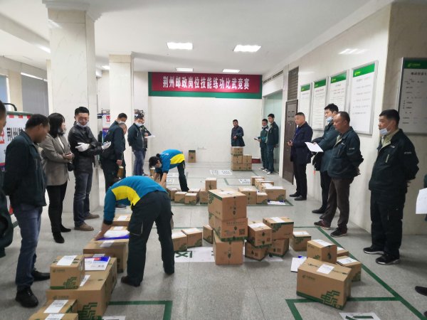 “老陳加油,老候30個了,趕快超過他”“再快點”在荊州分公司江津投遞站的生產(chǎn)車間,一場激動人心的技能比武正在火熱進(jìn)行,沒上場的參賽者們正化身啦啦隊為比賽的隊友鼓勁加油。