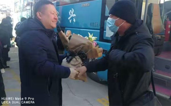 11月26日呼瑪縣郵政分公司北疆支局鄉(xiāng)郵員韓幫緒赴京參加全國勞模表彰大會載譽歸來,大興安嶺地區(qū)郵政分公司黃俊光副總經(jīng)理代表地區(qū)分公司黨委、工會在客運站迎接勞模韓幫緒,并送上鮮花和慰問品表示最熱烈的祝賀。