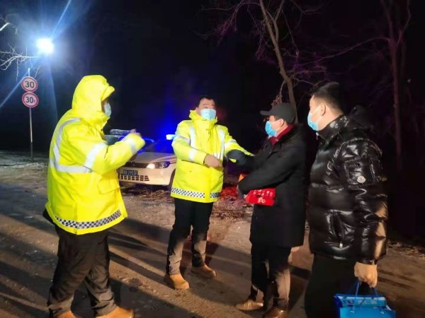2021年1月20日晚,碾子山區(qū)委常委、宣傳部長亓光焱、文明辦于洪波主任會同碾子山區(qū)郵政分公司的領(lǐng)導(dǎo)班子、辦公室全程驅(qū)車65公里,總歷時3個半小時,來到該區(qū)的五個邊界卡口,為日夜奮戰(zhàn)在抗疫一線的工作人員送去暖心的慰問。