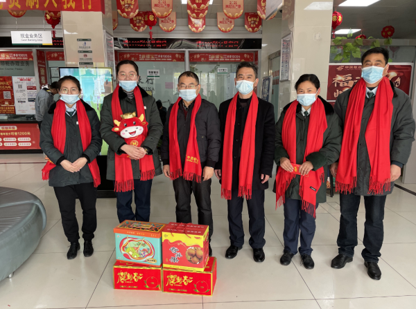 從大年初一到初五,每天,都有市分公司領(lǐng)導(dǎo)帶隊到各縣分公司和營業(yè)局優(yōu)秀支局網(wǎng)點慰問。在每一個支局,市分公司領(lǐng)導(dǎo)向支局的員工圍上了大紅圍巾,用這火一樣的紅色表達了大家對新春的期盼,對中國郵政的美好祝福! 在宿州分公司,只有一位員工是留置在宿但在親戚家過年,宿州郵政工會向其單獨發(fā)放了水餃、紅包和春節(jié)慰問品。春節(jié)期間,支局依然沒有休假,像往常一樣工作、生活在支局,宿州郵政工會慰問了所有的支局員工。為了解決分揀員和投遞員因春節(jié)期間餐飲服務(wù)業(yè)多數(shù)停業(yè)而就餐困難的問題,宿州郵政工會為全市分揀和投遞人員購買了3800份快餐面、火腿腸等食品,發(fā)放了15000元的酒精、口罩、手套、洗手液等防疫物資。