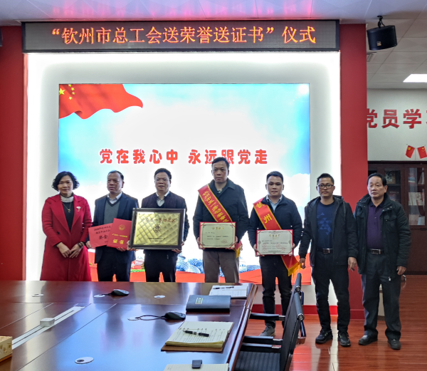 新年伊始,“欽州市總工會(huì)送榮譽(yù)送證書”儀式在中國郵政欽州市分公司舉行,欽州市總工會(huì)楊玉紅副主席為“廣西五一勞動(dòng)獎(jiǎng)狀”獲得單位中國郵政欽州市分公司、“欽州市五一勞動(dòng)獎(jiǎng)?wù)隆鲍@得者中國郵政欽州市分公司副總經(jīng)理何偉、“欽州工匠”獲得者中國郵政欽州市分公司信息技術(shù)班班長蘇曉鋒頒發(fā)牌匾、獎(jiǎng)?wù)录白C書。(廣西郵政工會(huì))