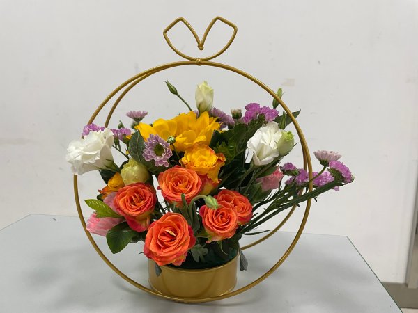 活動(dòng)伊始,資深花藝師熊老師,采用向日葵、黃玫瑰、粉色康乃馨、相思梅、白色桔梗、粉菊、勿忘我、梔子葉、尤加利等花材,講述了插花和繪畫、建筑、雕塑等等是相通的,插花中要注意黃金分割比例、色彩、主次關(guān)系、質(zhì)感、韻律、平衡……還有花的護(hù)理方法。講座最后,熊老師親自為大家演示了圓環(huán)花藝的制作全過程。在聽了熊老師專業(yè)細(xì)致的花藝講座后,女員工們深入了解了千姿百態(tài)的花草世界,聆聽了動(dòng)聽悅耳的花草語(yǔ)言。