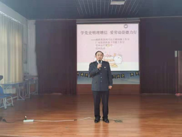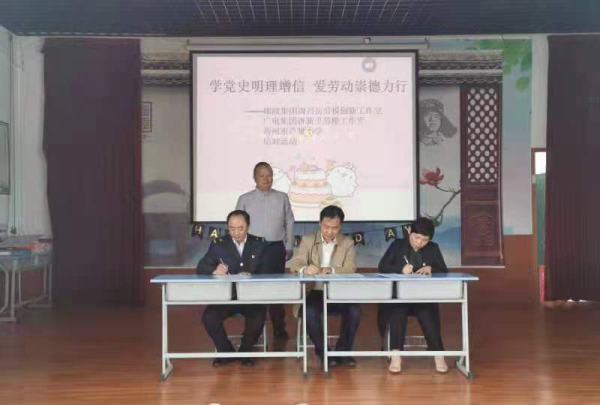 4月28日下午,“學(xué)黨史明理增信、愛勞動(dòng)崇德力行”勞模工作室結(jié)對(duì)進(jìn)校園活動(dòng)在常州市蘆墅小學(xué)隆重舉行,常州郵政周乃岳勞模工作室和常州廣電唐新衛(wèi)勞模工作室與蘆墅小學(xué)共簽結(jié)對(duì)共建協(xié)議。今后兩個(gè)勞模工作室將積極發(fā)揮自身優(yōu)勢(shì)和特色,助力校方把勞動(dòng)教育納入人才培養(yǎng)全過程,讓學(xué)生們樹立勞動(dòng)最光榮、勞動(dòng)最美麗的觀念,更加熱愛勞動(dòng),尊重普通勞動(dòng)者,形成正確的世界觀、人生觀、價(jià)值觀。廣電唐新衛(wèi)勞模為大家播放了自己團(tuán)隊(duì)制作的黨史教育微視頻,帶領(lǐng)師生們一起重溫百年黨史光輝歷程;郵政公司周乃岳勞模結(jié)合自身經(jīng)歷談了自己的入黨初心以及如何成長為勞模的心路歷程,對(duì)孩子們開展了勞動(dòng)教育。兩位勞模還為該校30位困難學(xué)子捐贈(zèng)了裝有學(xué)習(xí)用品的愛心包裹。