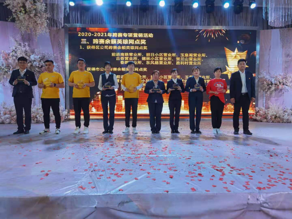 為總結(jié)表彰代理金融(2020-2021)跨年度專項(xiàng)營銷活動、2020年全市優(yōu)秀營銷項(xiàng)目及特快專遞業(yè)務(wù)2021年一季度“金牛迎春”勞動競賽中涌現(xiàn)出的先進(jìn)集體和個(gè)人,在石嘴山市郵政工會的精心組織和籌備下,5月7日下午,石嘴山市分公司召開總結(jié)表彰會議。市分公司領(lǐng)導(dǎo)班子,全體員工;各縣區(qū)分公司領(lǐng)導(dǎo)班子、各部門主任、網(wǎng)點(diǎn)負(fù)責(zé)人、獲獎(jiǎng)職工及獲獎(jiǎng)職工家屬參加了表彰大會。