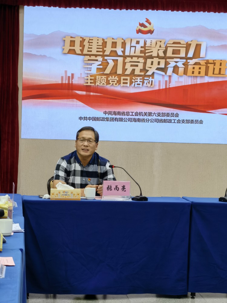 5月14日,省總工會機關(guān)第六黨支部和省郵政工會黨支部聯(lián)合開展了“共建共促聚合力,學(xué)習(xí)黨史齊奮進(jìn)”主題黨日活動。省總工會副主席張丙亮,省分公司黨委委員、副總經(jīng)理、工會主席陳奮以普通黨員身份參加活動。
