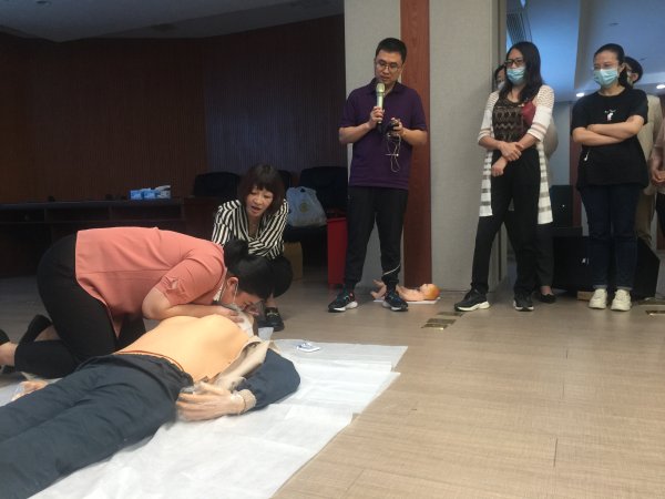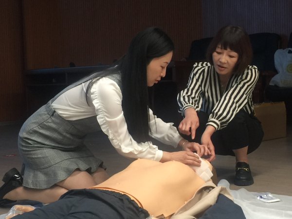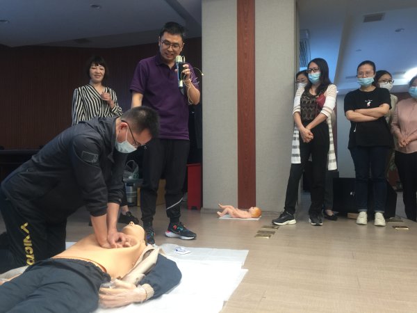在現(xiàn)場演練教學(xué)環(huán)節(jié),很多學(xué)員自告奮勇,在老師的指導(dǎo)下進(jìn)行了心肺復(fù)蘇和海姆立克急救法演練學(xué)習(xí),紛紛表示效果良好。