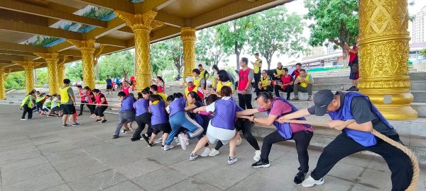 接著劃分為四大組別,進(jìn)行集體項目對決,首先開展的第一項便是珠行萬里,隊友排排站,U型槽緊密相連,臉上洋溢著團(tuán)結(jié)一心、必勝的決心。兩人三足游戲,男女步調(diào)一致,紛紛沖鋒在前,場外陣陣加油聲淹沒了雨聲。緊接著拉起了大跳繩,紛紛捕捉運(yùn)動健將和身材瘦小人員,他們具有天然的跳躍優(yōu)勢,人員選拔完畢,哨聲一響,按照順序紛紛跳入繩中,全員到齊,咬緊牙關(guān)連跳10下方算是完成小組任務(wù)。拔河活動蓄勢待發(fā),兩隊已準(zhǔn)備就緒,調(diào)動全身力氣,勁往一處使,在陣陣掌聲中中,紅隊一騎絕塵,摘得桂冠。