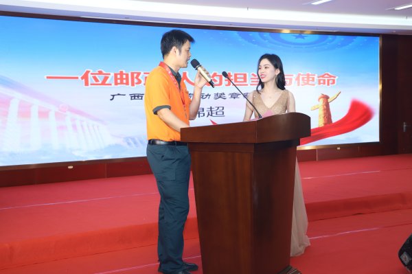 在講堂上,大家聆聽(tīng)了“廣西五一勞動(dòng)獎(jiǎng)?wù)隆鲍@得者中國(guó)郵政集團(tuán)有限公司貴港市分公司寄遞事業(yè)部業(yè)務(wù)員周錦超的故事。周錦超工作19年來(lái)一絲不茍、任勞任怨。去年疫情期間,他帶領(lǐng)同事們奮戰(zhàn)在抗疫一線,主動(dòng)請(qǐng)纓兩次前往湖北省仙桃市,運(yùn)回2861箱貴港市急需的防疫物資,為打贏防疫戰(zhàn)打下基礎(chǔ)。