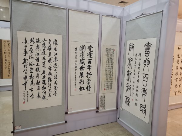 6月28日,“慶祝中國(guó)共產(chǎn)黨成立100周年”全省郵政職工書(shū)畫(huà)攝影展在省公司三樓展廳展出。干部職工紛紛駐足觀看,對(duì)參展作品贊不絕口。