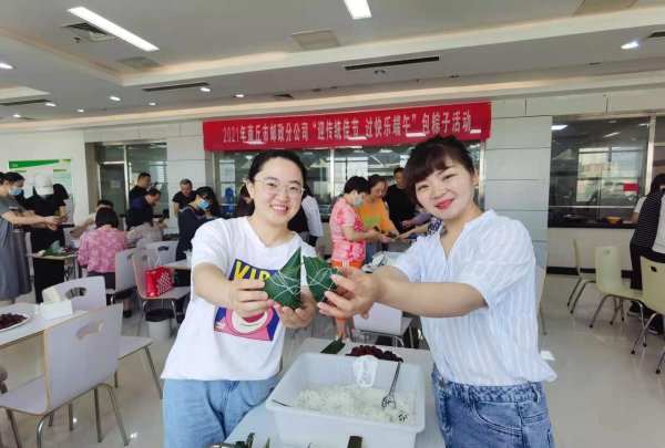 為迎接傳統(tǒng)佳節(jié),進一步豐富職工文化生活,市郵政工會于6月11日上午在職工食堂組織開展了包粽子活動,來自市分公司、市區(qū)分公司的100余名員工參加了本次活動?;顒右婚_始,大家便熱情高漲,積極參與,通過合理分工,捋粽葉、填糯米、裝餡料、壓緊實、扎捆,相互交流心得,不一會兒就呈現(xiàn)出三角形、牛角形等各式各樣的漂亮粽子,大家手捧著親手包出來的粽子,臉上綻放著幸福的笑容。溫馨和諧的氣氛,營造了濃濃的“家”的味道,使大家深深感受到企業(yè)大家庭的溫暖,進一步增強了廣大員工的歸屬感。(河南省郵政工會)
