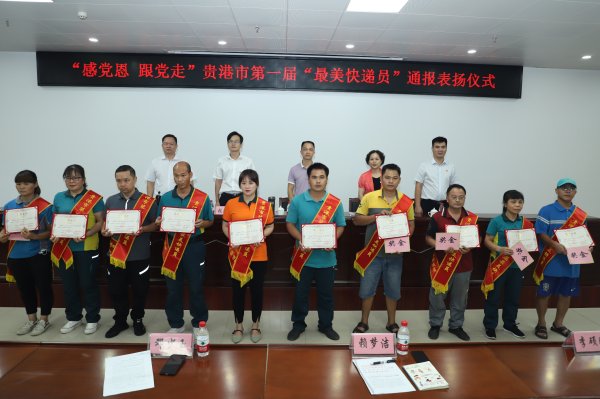 會(huì)議宣讀了《關(guān)于表彰貴港市第一屆“最美快遞員”的通報(bào)》,為10名“最美快遞員”頒發(fā)了榮譽(yù)證書(shū)和獎(jiǎng)金。