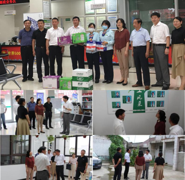 毛善群副主席一行人員在新橋支局,向高溫期間堅守在一線的職工表示慰問,為他們送上礦泉水、綠茶等清涼物資。并向職工了解日常工作情況和高溫勞動防護措施情況,叮囑一線職工做好防暑降溫措施,注意勞逸結(jié)合,保障自身的安全健康?,F(xiàn)場職工表示在炎熱的夏天,不僅身體感受到了清涼,心里也收獲了滿滿的溫暖。 毛善群副主席一行人員,聽取了市分公司楊文主席對郵政公司開展的普遍服務、助農(nóng)鄉(xiāng)村振興、郵政金融、快遞上門服務、農(nóng)村電商等工作的匯報;接著,在楊文主席陪同下,先后來到網(wǎng)點“小菜園”、新橋支局“職工小家”進行參觀。