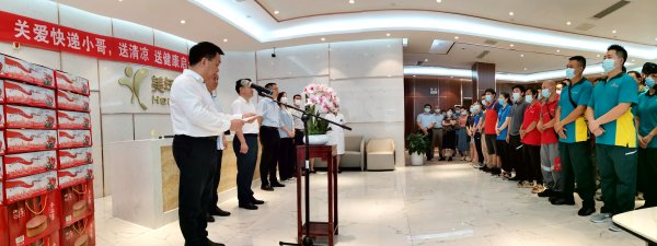 “關(guān)愛快遞小哥,送清涼、送健康”由湖北省總工會、省郵政管理局、武漢市郵政管理局、湖北省快遞協(xié)會、武漢市快遞協(xié)會聯(lián)合組織活動,安排快遞企業(yè)的優(yōu)秀快遞員工免費體檢,并對一線快遞員工進行高溫慰問。