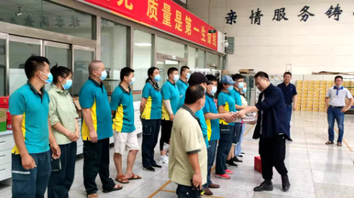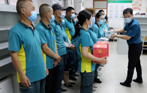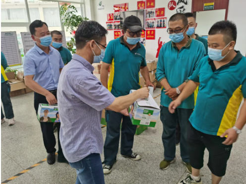 在淮西分撥中心生產現場,黨委書記、總經理劉永紅為高溫下勤懇工作的職工送去清涼飲品和防暑降溫用品,并親切叮囑大家在工作中要注意防暑,在保質保量完成工作的同時注意照顧好自己的身體。