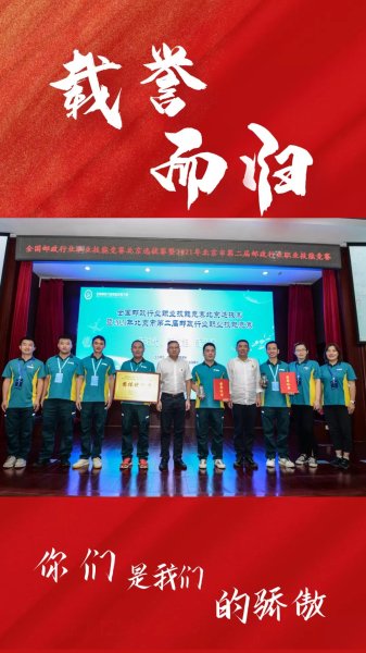 9月28日,全國(guó)郵政行業(yè)職業(yè)技能競(jìng)賽北京選拔賽暨2021年北京市第二屆郵政行業(yè)職業(yè)技能競(jìng)賽圓滿落幕,北京分公司參賽代表隊(duì)載譽(yù)而歸。昌平區(qū)分公司張東方和通州區(qū)分公司董海明摘得個(gè)人綜合全能獎(jiǎng)前兩名,北京市郵政分公司獲團(tuán)體獎(jiǎng),梁瓊獲優(yōu)秀教練獎(jiǎng)。