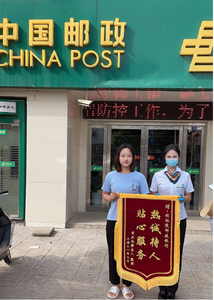 日前,盱眙縣分公司明祖陵支局長(zhǎng)祝成莉收到一位姑娘送來(lái)的錦旗。
