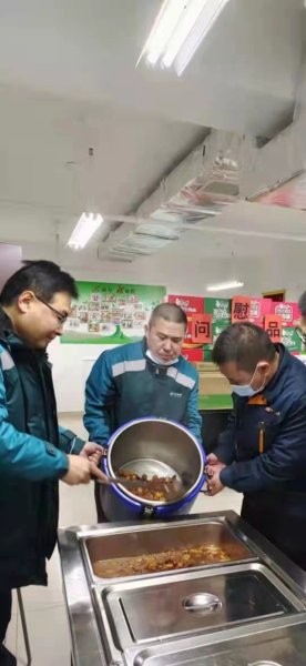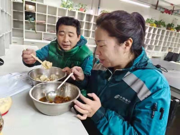 東城區(qū)分公司領導班子、部室主任一大早就拉上慰問品對奮戰(zhàn)在一線的投遞員工進行了慰問,工會為他們準備了餃子、肘子、燉肉、熱湯。 從領導手中接過方便面、火腿腸、鹵蛋、牛奶等慰問品,吃著熱乎可口的燉肉和餃子,投遞員們樂開了花,好像風雪寒冷都消失了,只感到濃濃的暖意。(北京郵政工會)