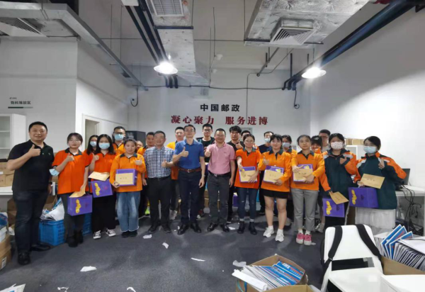 10月29日下午,區(qū)分公司黨委副書記、副總經(jīng)理沈飛華在工會(huì)工作人員的陪同下,帶隊(duì)赴進(jìn)博證件寄遞服務(wù)中心進(jìn)行慰問活動(dòng),為全體在崗的每位員工送上慰問品及慰問信,對(duì)志愿加入證件寄遞服務(wù)項(xiàng)目團(tuán)隊(duì)的員工送去區(qū)分公司黨委的殷切關(guān)懷和慰問。