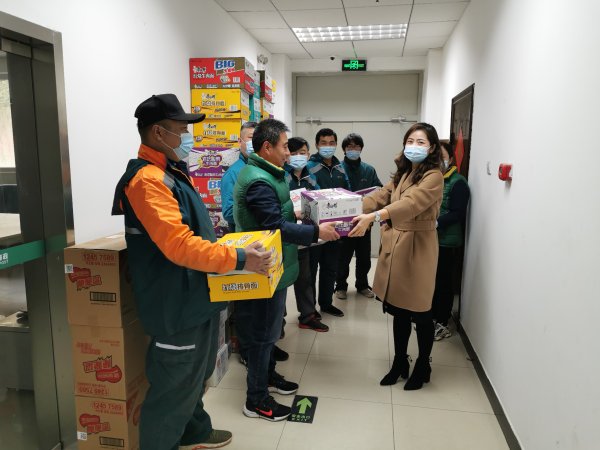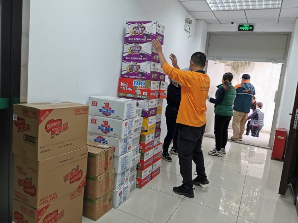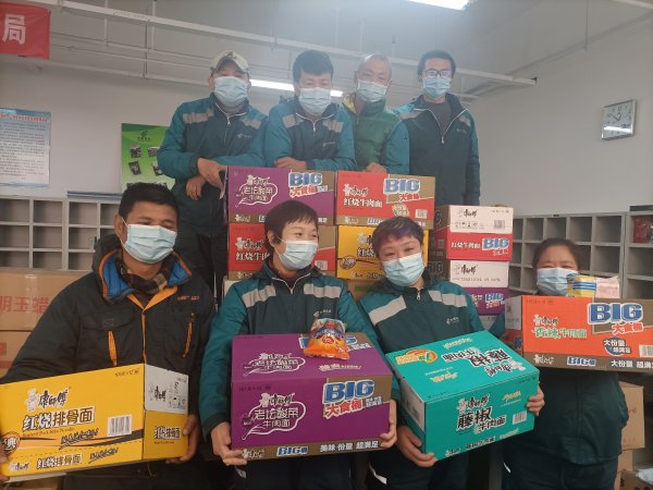 石景山區(qū)分公司工會趕在雙11到來之前,集中采購了火腿腸、方便面、榨菜、面包、牛奶、巧克力等食物,工會主席侯婭梅親自帶著慰問品,慰問奮戰(zhàn)在一線的投遞員。
