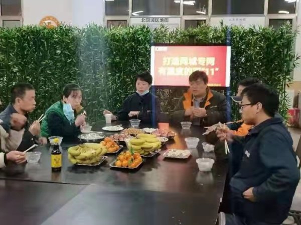 11月10日,同城業(yè)務(wù)分公司經(jīng)理李鵬帶領(lǐng)職能人員來到海淀和東區(qū)集散中心“職工小家”,為雙十一投遞勇士們包加油餃子。