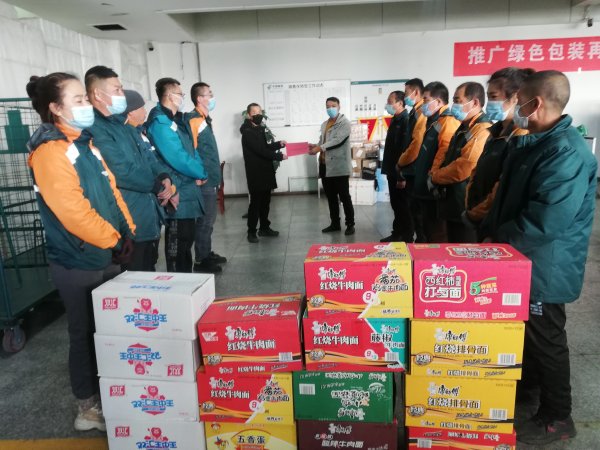 一年一度的“雙十一”郵件處理高峰期如期而至,伴隨著立冬的一場(chǎng)大雪,鄂爾多斯的氣溫驟降,一夜之間從溫暖的初秋跨越到了冰天雪地的隆冬。天冷人心不能冷。11月11日鄂爾多市郵政分公司黨委委員、工會(huì)主席李春霖、寄遞事業(yè)部常務(wù)副總賀國(guó)清一行代表市分公司黨委、工會(huì),上午對(duì)寄遞事業(yè)部網(wǎng)路運(yùn)營(yíng)中心,下午對(duì)鐵西普服投遞部和鐵西攬投部進(jìn)行了慰問(wèn),為他們送去了慰問(wèn)金和方便面、火腿腸、鹵蛋等慰問(wèn)品。