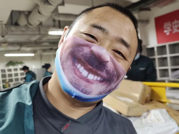 為了緩解“雙11”工作的疲憊狀態(tài),東四郵政支局投遞部的這名小伙子網(wǎng)購了這個可愛的口罩,他說:“我們把微笑送出去,不讓自己疲憊的身影影響用戶!”