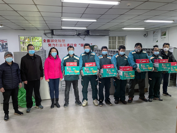 11月初,正當(dāng)常州市分公司全力以赴積極備戰(zhàn)“雙11”生產(chǎn)旺季之際,常州突發(fā)疫情,為確保疫情防控和旺季生產(chǎn)的“雙勝利”,切實履行行業(yè)“國家隊”責(zé)任擔(dān)當(dāng),常州市分公司于11月8日集中開展了一線旺季慰問活動,由市分公司領(lǐng)導(dǎo)分別帶隊,各職能部室負(fù)責(zé)人參與,分5組對郵區(qū)中心、快遞包裹部、速遞部同城中心和城區(qū)19處營投部進(jìn)行慰問,為一線員工送上方便面、八寶粥、牛奶、水果等慰問品。