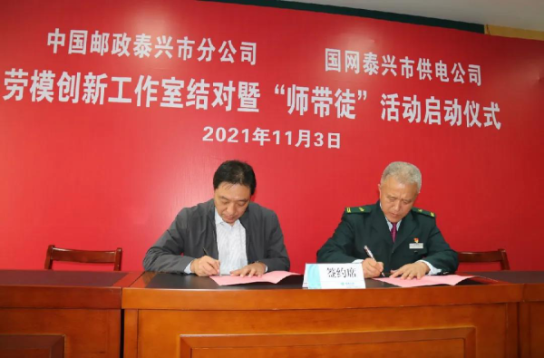 11月3日下午,泰州首次“跨行聯(lián)盟”在泰興正式啟動(dòng),泰興市郵政分公司何健忠勞模創(chuàng)新工作室與泰興市供電公司張強(qiáng)勞模創(chuàng)新工作室舉行結(jié)對共建簽約儀式。泰興市委,市、縣兩級(jí)郵政分公司及供電分公司領(lǐng)導(dǎo),社會(huì)代表等50余人出席活動(dòng)。