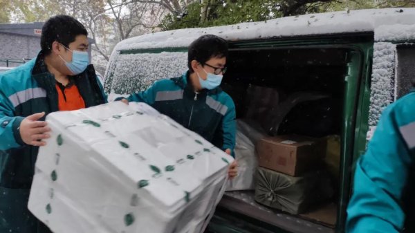 戰(zhàn)旺季,燃在一線生產(chǎn)。11月7日,東城區(qū)分公司一頻進口郵件近10000件,在攬投平臺作用下,早7:30已全線趕班發(fā)往各點部。此時,各點部也早已清理好車輛,全員嚴陣以待。由于東城區(qū)道界多為狹窄胡同和無電梯的老舊小樓,多數(shù)投遞員、攬投員只能在有限的道段上使用二輪電動車,加上風雪的影響,都為今天的投遞工作增加了難度。然而,風雪更加燃起了東城郵政人的熱情,全局上下共同投入郵件投遞,一輛輛郵政車、一名名投遞員頂風冒雪穿行在街道巷尾。至上午12時左右,一頻進口郵件基本妥投到戶。