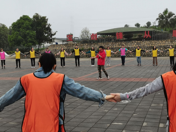 開(kāi)班前,隊(duì)長(zhǎng)帶領(lǐng)著自己的隊(duì)員開(kāi)始了教練要求完成的第一個(gè)任務(wù),起隊(duì)名,各隊(duì)集思廣益,都取了非常有正能量的隊(duì)名,別是“雄鷹隊(duì)”、“太陽(yáng)隊(duì)”、“飛翔隊(duì)”及“無(wú)敵隊(duì)”,并依次確定口號(hào)、畫(huà)logo,選隊(duì)歌、擺造型,其中口號(hào)和隊(duì)歌也讓大家激動(dòng)不已。隨后,隊(duì)員們參與“盲人方陣”、“建球”、“陸地冰壺”、“動(dòng)力圈”等團(tuán)隊(duì)項(xiàng)目。其中“盲人方陣”讓大家充分體會(huì)到相信對(duì)方的重要性、理解團(tuán)隊(duì)領(lǐng)導(dǎo)人及其領(lǐng)導(dǎo)風(fēng)格對(duì)完成任務(wù)的影響和重要性;“建球”時(shí)每個(gè)成員必須膽大心細(xì),敢于挑戰(zhàn),相互鼓勵(lì),戰(zhàn)勝恐懼;“陸地冰壺”讓大家明白良好溝通對(duì)團(tuán)隊(duì)合作的重要性、團(tuán)隊(duì)目標(biāo)的實(shí)現(xiàn)需要每個(gè)人發(fā)揮作用、個(gè)人成功必須建立在團(tuán)隊(duì)其他成員的共同努力與共同支持的基礎(chǔ)之上。