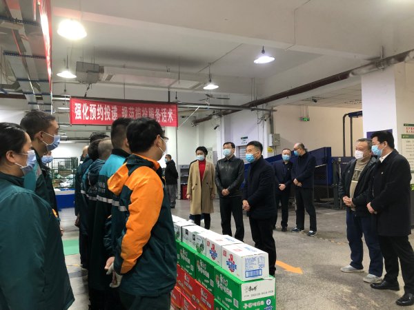 11月10日上午,市郵政管理局周向東局長、市分公司胡紹波副總經(jīng)理及重慶市快遞業(yè)協(xié)會代表一行赴沙坪壩區(qū)曬光坪營業(yè)部慰問奮戰(zhàn)在“雙11”旺季生產(chǎn)一線的投遞員。在作業(yè)現(xiàn)場,周向東細致檢查皮帶機等自動化作業(yè)設(shè)備的安全性,詳細詢問“雙11”期間營業(yè)部每日的進出口量,親切關(guān)心投遞員的工作及生活情況并送上牛奶、飲用水、方便食品等慰問品。和投遞員們站在一起,周向東稱贊郵政投遞員在關(guān)鍵時刻堅守崗位、辛勤工作,體現(xiàn)了郵政企業(yè)行業(yè)國家隊的責(zé)任與擔(dān)當,突出了郵政業(yè)戰(zhàn)略性、基礎(chǔ)性和先導(dǎo)性的重要作用。最后,周向東親切囑咐大家要在工作中做好防疫防寒。